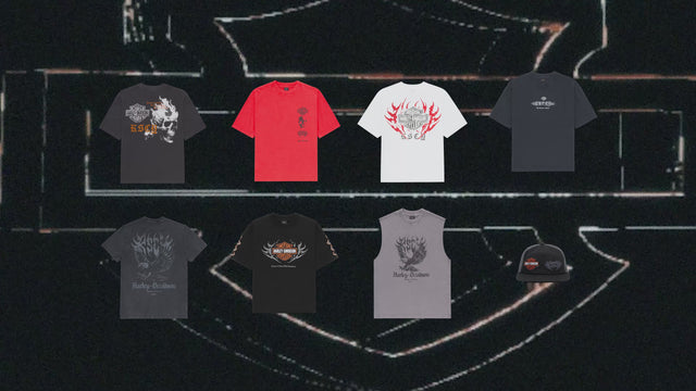 The creative direction for this capsule began deep in the Harley-Davidson archives. We sifted through decades of artwork, graphics, badges, racing marks, and vintage dealer tees - studying how the brand built its visual identity across generations. Those vintage tees became a cornerstone of the process. Their cracked inks, sun-faded colours, and perfectly imperfect wear patterns set the tone for the collaboration.