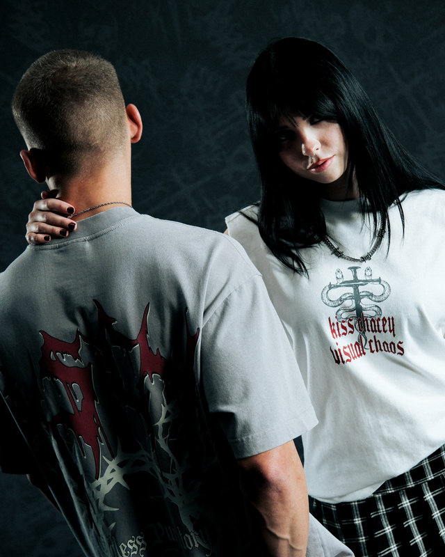 A melting pot of chaos, where pigment washes and muted tones fuse with heavy graphics on new and loved shapes.